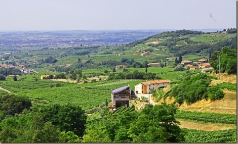 As with most Italian wine regions, the Veneto region of Italy has lovely hillside vineyards and charming small villages surrounding the romantic city of Verona. Surprisingly, many vineyards here use the traditional Pergola method of vine training, in which the grapevines form an overhead canopy, which when viewed from a distance form an impression of an undulating sea of grape leaves. In the past this form of trellising was likely favored because it allowed other crops to be grown underneath the vines. But many viticulturists prefer it because the grapes are protected from the hot summer sun, reducing sunburn and encouraging thinner skins.